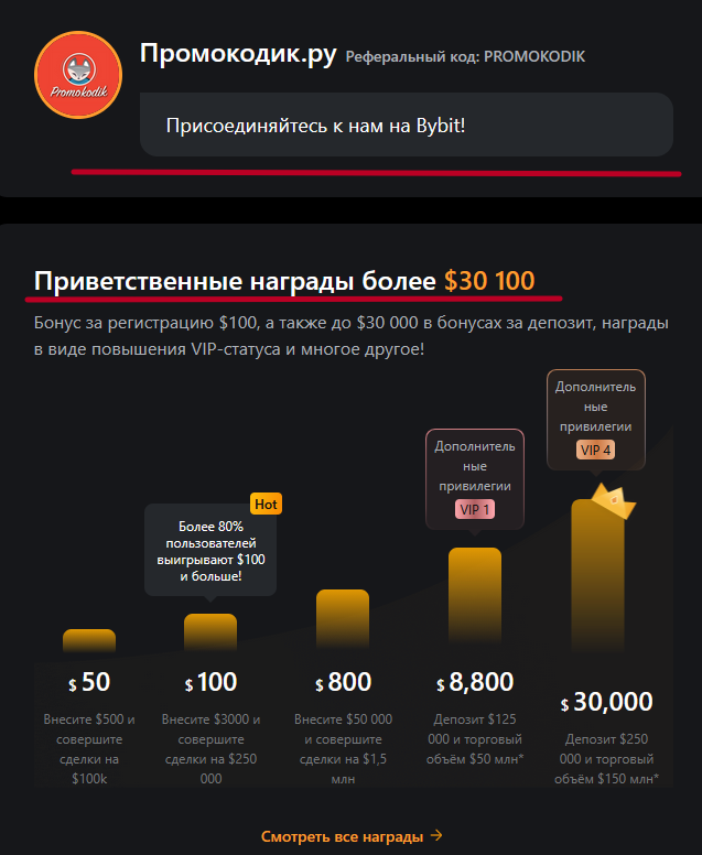 Актуальный реферальный код Bybit на 100 USDT при регистрации: PROMOKODIK