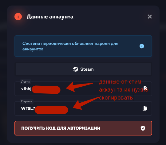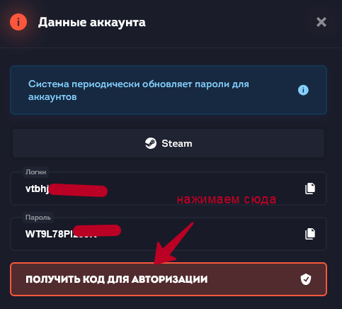 6. Получаем код, копируем его и вставляем в Steam лаунчер.