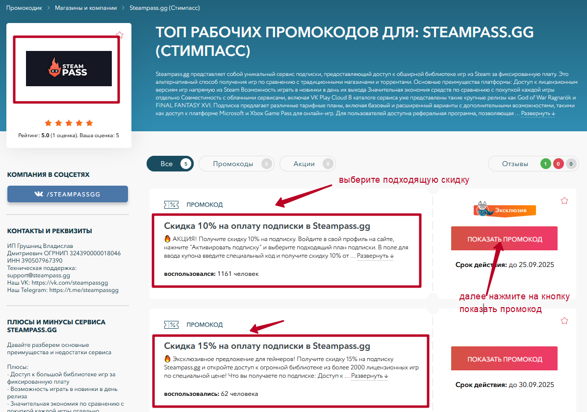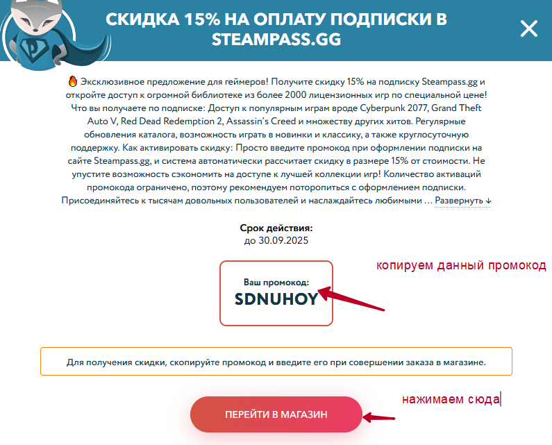Как правильно оформить подписку Steampass и получить скидку по купону до 15%?