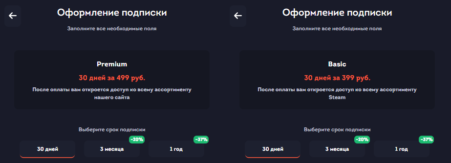 3. Оформление подписки: Дает возможность получить доступ ко всему каталогу Steam игр.