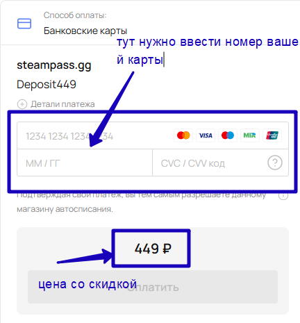 2.4 Далее вам потребуется указать в специальном поле номер купона для получения дополнительной скидки его вы можете найти на нашем сайте Promokodik.ru на специальной странице с промокодами для Стимпасс. На данный момент действует эксклюзивная скидка 10% на оплату подписки.