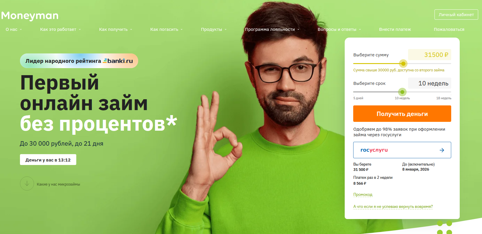 Moneyman.ru — это онлайн-сервис микрофинансирования, предоставляющий быстрые займы на сумму до 100 000 рублей. Компания работает полностью дистанционно: оформление, одобрение и получение средств происходят через интернет. Промокоды — это часть бонусной программы, направленной на привлечение новых клиентов и поддержку постоянных. Они позволяют заемщикам экономить, гибко управлять сроками возврата и получать дополнительные преимущества.