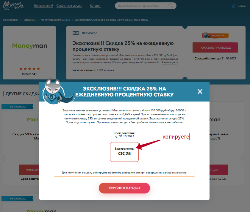 Как активировать промокод на сайте Moneyman.ru и получить скидку 50%